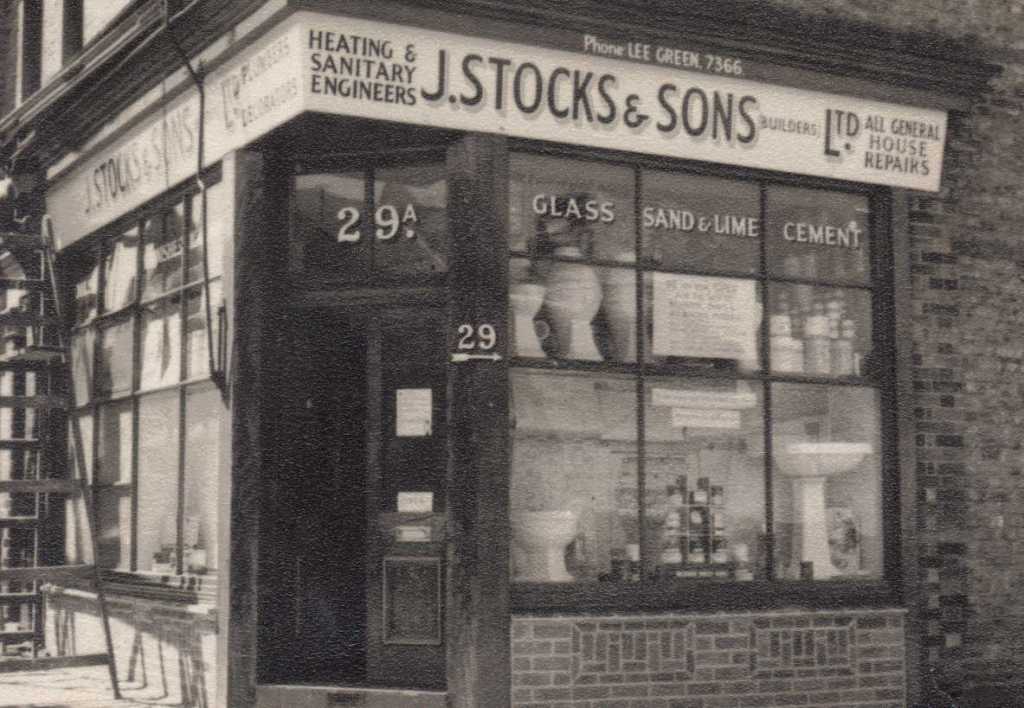 The photo above shows my grandfather and his neighbours on the opposite side of the road to their house, celebrating the Coronation of Queen Elizabeth II in 1953. Jim built up his own business further down the street at no. 29A, towards Hither Green station, under the name J. Stocks & Sons (below).