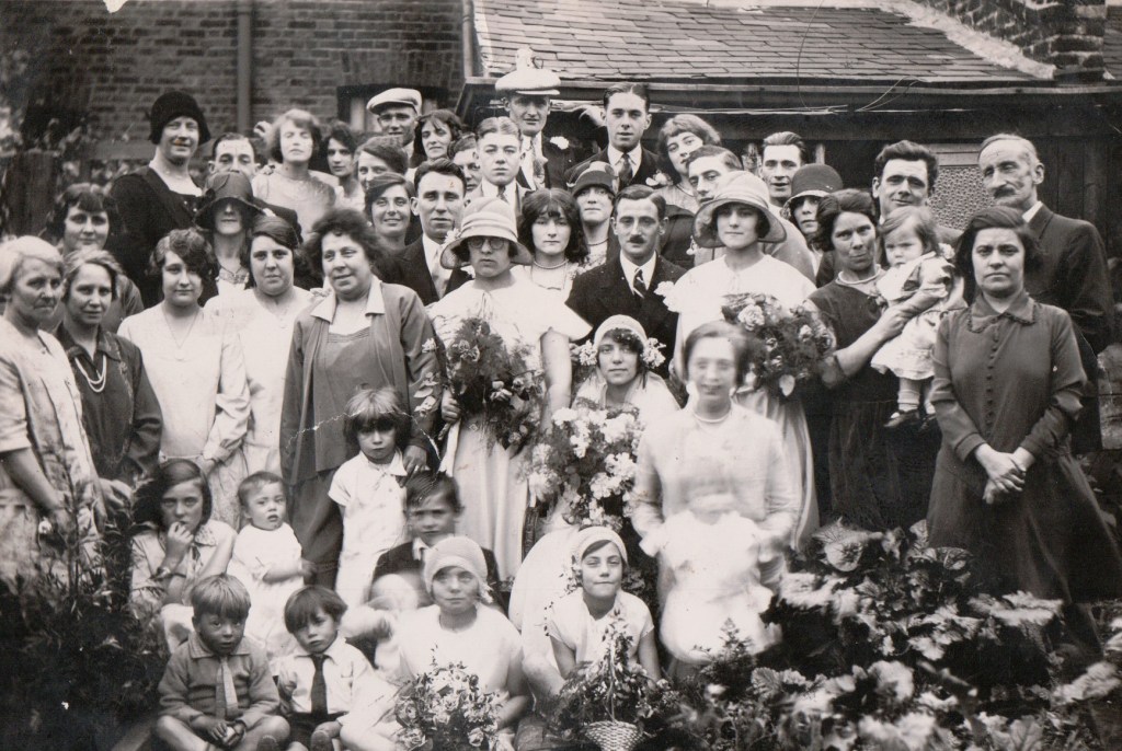 The adult bridesmaids are my great aunts Susan Caroline Stocking (standing on the groom’s left) and Dolly Hannah Stocking (on the bride’s right). The child bridesmaids are the bride’s younger sisters Gladys and Elsie Ephgrave.