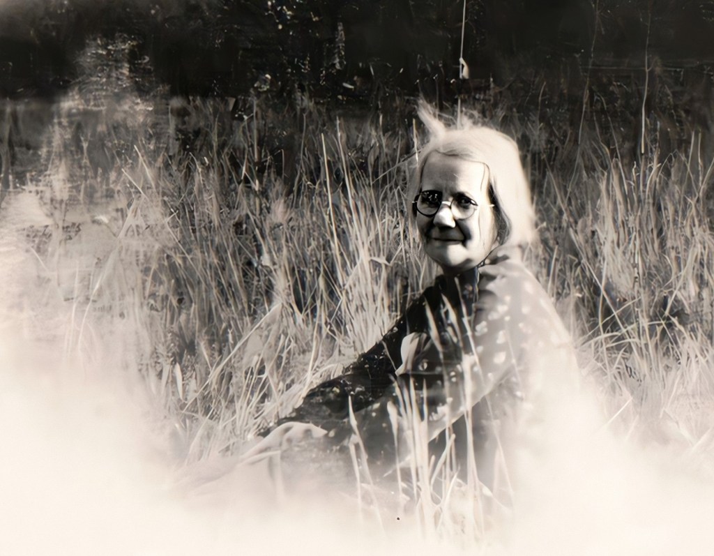 The photo below (enhanced and repaired at MyHeritage and then cropped) shows Susan Caroline in later life, in what looks like a wild garden, park or field, probably in the late 1940s.