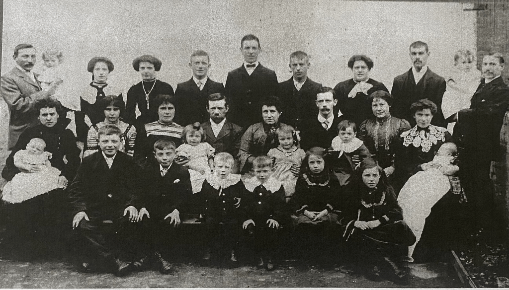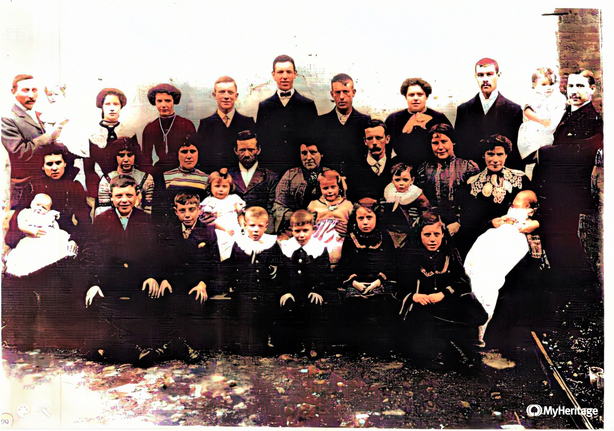 After putting my family tree online with Ancestry.co.uk in the early 2000s, I was contacted by a second cousin once removed, who provided a poor photocopy of a photo purporting to show our 2xgreat grandparents and some of their 19 children, taken some time in the early 1900s. In 2025, a third cousin shared a slightly clearer copy of the same image. There is speculation as to when exactly it was taken, and who appears in it, and I’d love to put more names to faces. But what do I know so far?