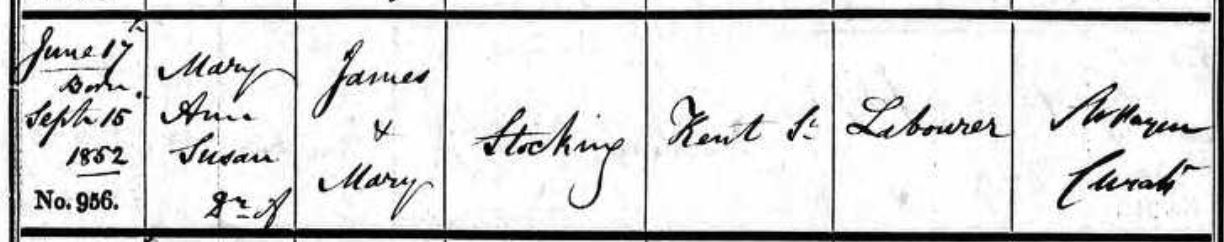 - Baptism of Mary Ann Susan Stocking 1855 (Ancestry.co.uk)