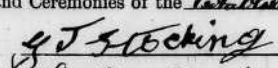 G Stocking, witness to daughter Martha Mary Ann Stocking‘s marriage to Joseph James Southwell, 15 November 1908