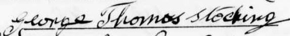 George Thomas Stocking, witness to son Stephen James Stocking‘s marriage to Amelia McLaughlin, 31 March 1907