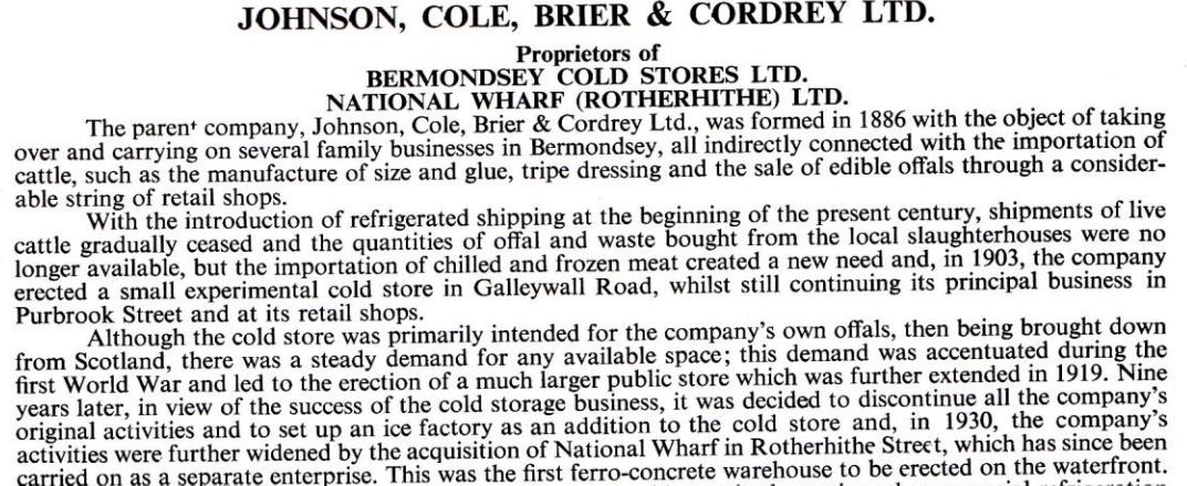 This is perhaps born out by his line of work ten years later. By the time of the 1921 census, they have moved to 43 Rolls Road, Bermondsey. Only Henry, Alice and 23 year old son Joseph Stocking are in the household on census night. Henry is now described as Storekeeper, Offal Merchants (Johnson, Cole & Co., 1 Purbrook Street, Tower Bridge Road). The firm was actually called Johnson, Cole, Brier & Cordrey, and it is described in this extract from what appears to be a directory of Bermondsey firms, hosted at Ken Ripper’s family history website (www.kenripper.co.uk/bog/18.pdf).