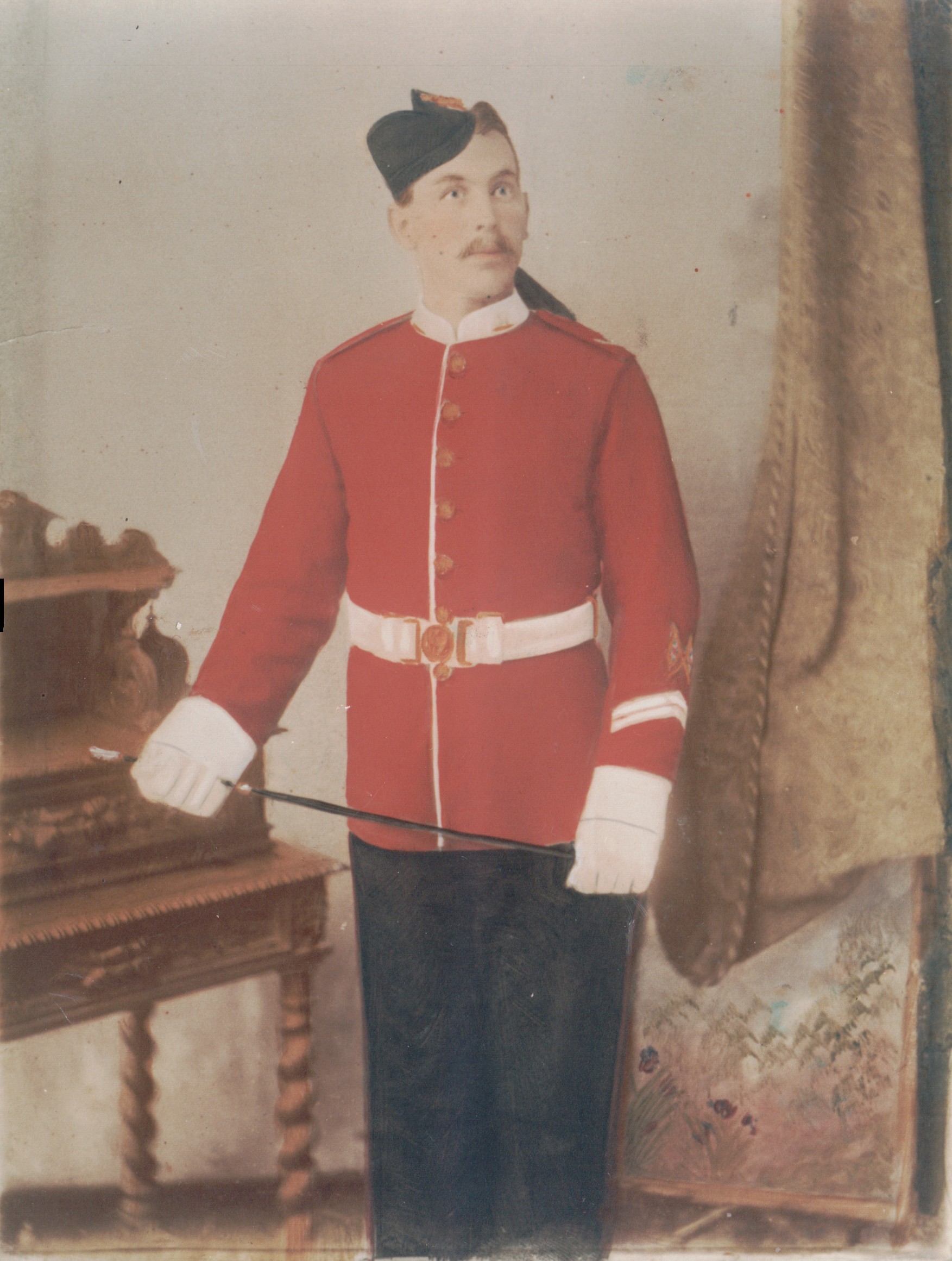 He was appointed Lance Corporal in the second battalion on 6 November 1889 and deprived of that rank a few days later. He was finally discharged, having completed his term of service, in April 1893, five months before he married Lavinia Seaby.