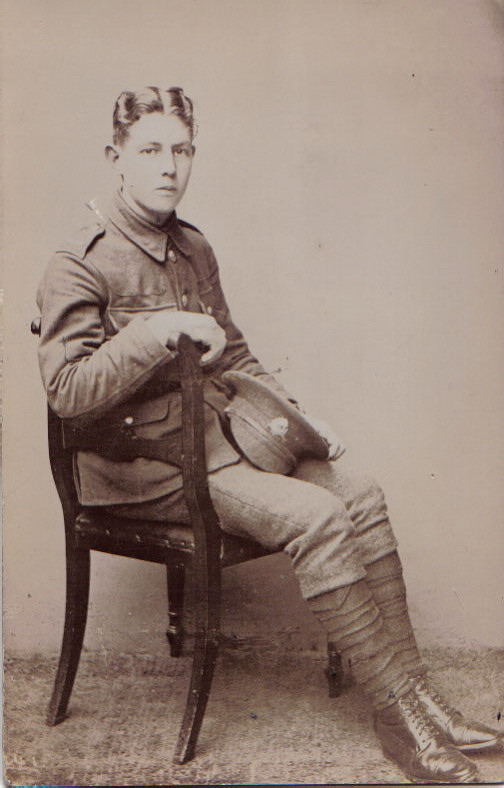 This family photo in postcard format shows Walter Charles Brown in uniform, probably taken before he left for the front, as a parting gift for friends and family.