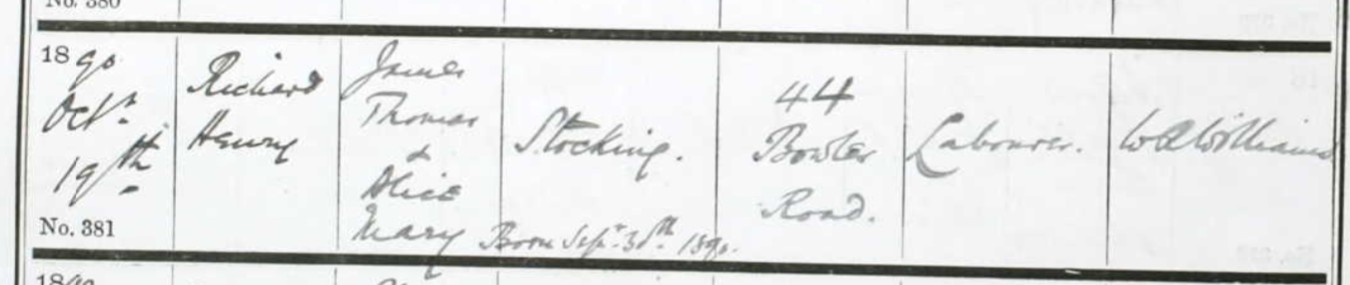 When Richard Henry Stocking was baptised St Mark’s Camberwell on 19 October 1890, his family home was 44 Bowles Road and his father was working as a Labourer. He had been born on 30 September that year, according to a note on the baptism record.