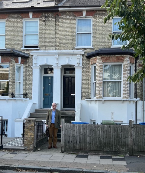 Archie and Jane Stocking had five grandchildren, as far as I know. Their grandson Roy Greenslade’s career as journalist and author is well-documented elsewhere (eg see Wikipedia), but I was pleased when he made contact – originally in 2010 via my original Blogger site and again via this blog in October 2025. He shared the photos and memories above as well as this photo of himself outside the family home at 86 Crystal Palace Road, taken in 2023.