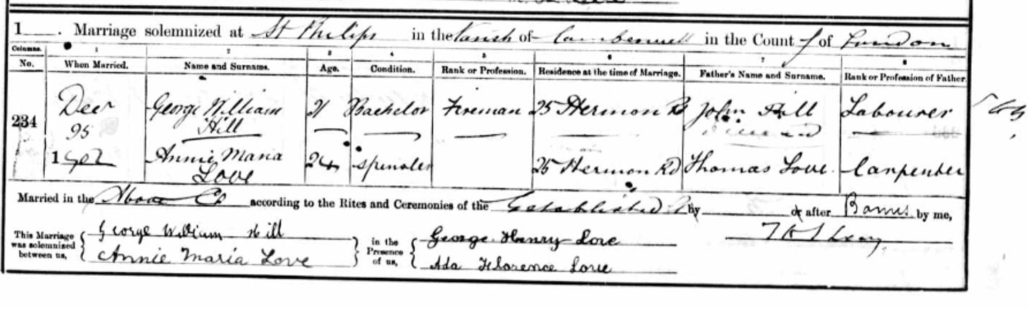 The following year, on Christmas Day 1902, he married Annie Maria Love.