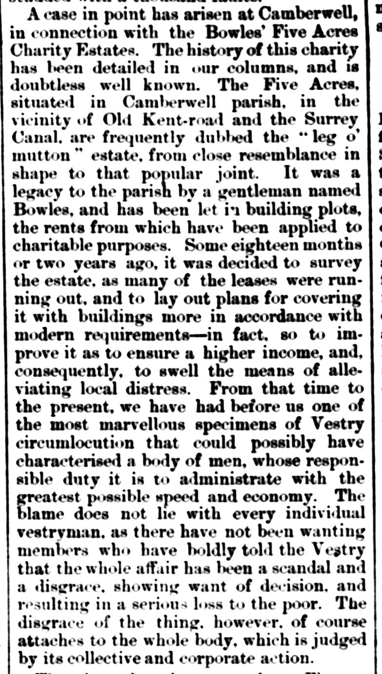 ‘Circumlocutions of the Vestry’ and the history of the ‘Leg o’ Mutton Estate’