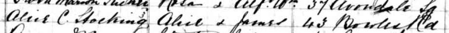 - 4 January 1899: Baptism of Alfred Edmund Ilott Stocking, son of James and Alice, 44 Bowles Road