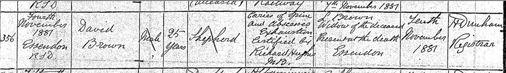 Extract from death certificate for David Brown, Shepherd, 1881 (GRO)
