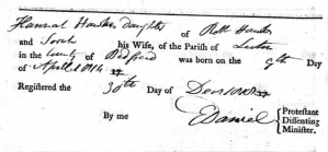World War I memories of Luton website notes that baptism had been a growing faith in Luton since the 1700s. Ebenezer Daniel had been the baptist minister in Luton since 1812, and it is his signature that appears on the Hawkes children’s birth registrations in 1818.