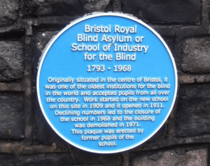 Blue plaque commemorating the Bristol Royal Blind Asylum, Henleaze (openplaques)