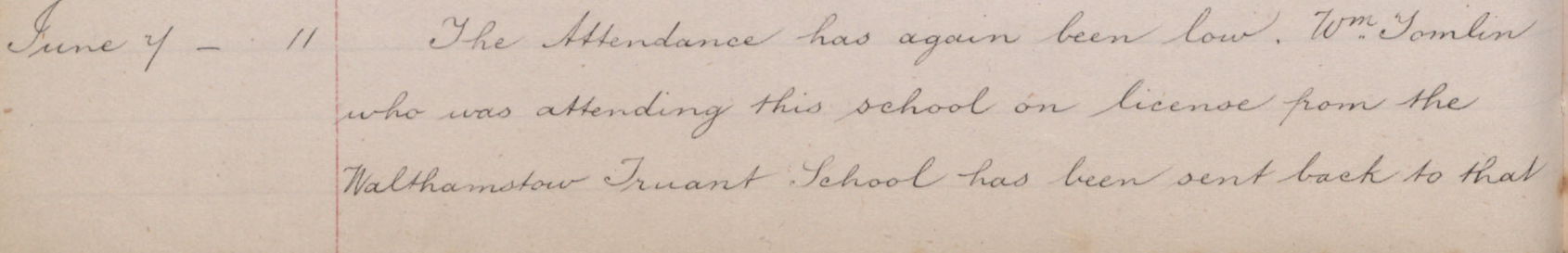 I found a clue in a record for Wm Tomlin in the Luton Chapel Street Boys’ School log for 7-11 June 1886: